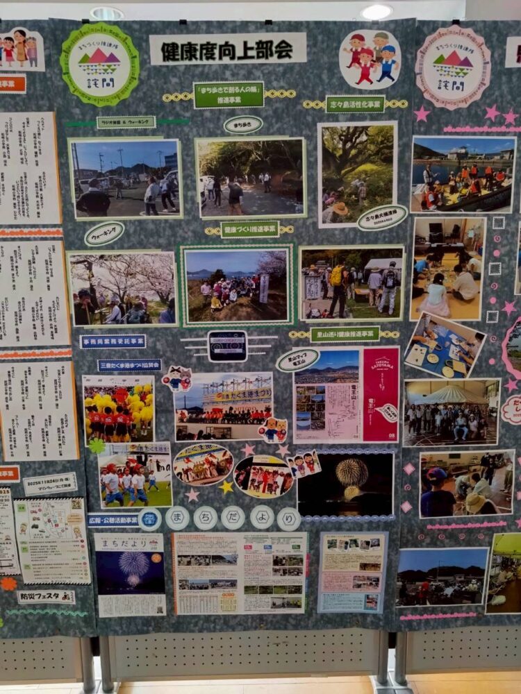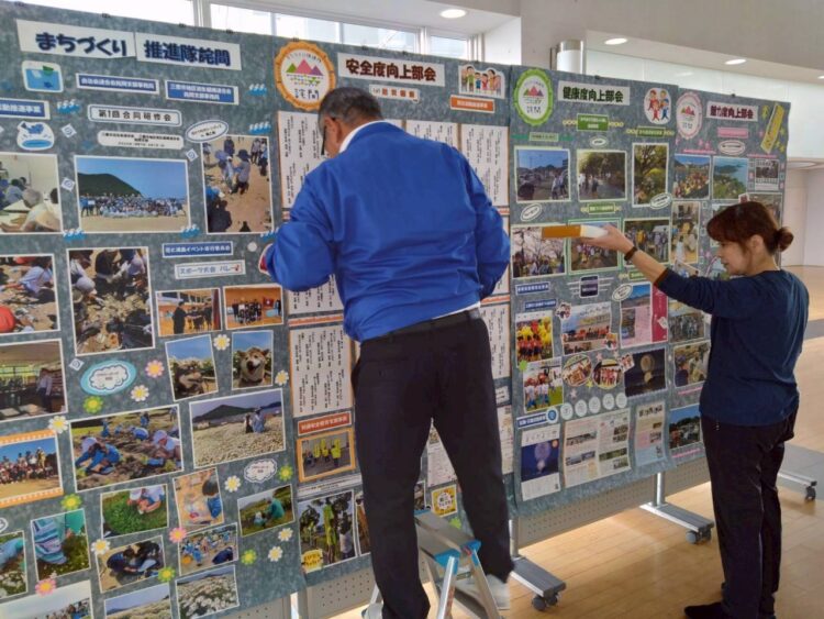 多くの展示がある中で、まちづくり推進隊詫間の活動記録も展示しています。