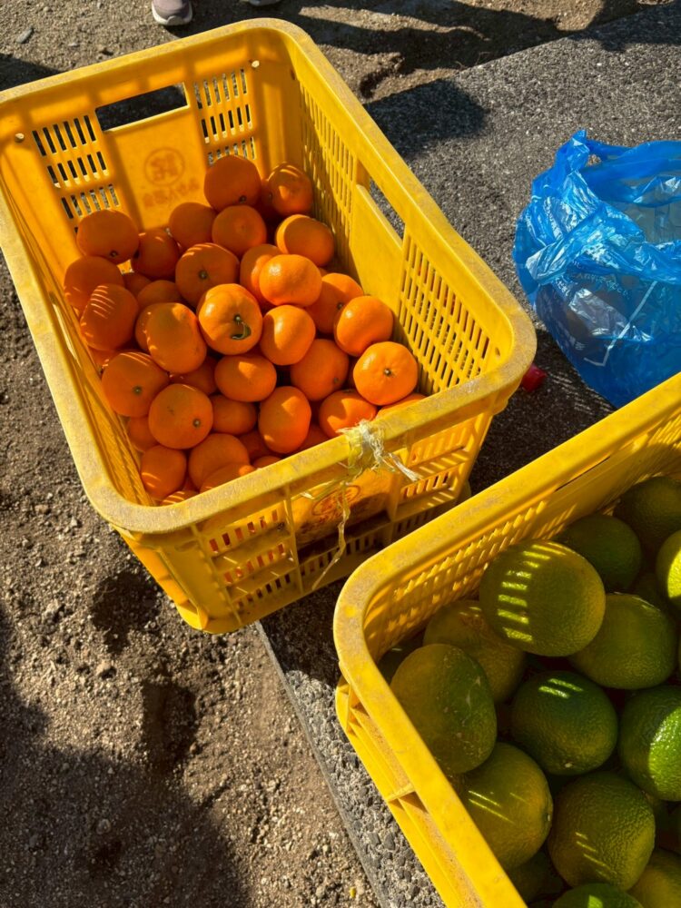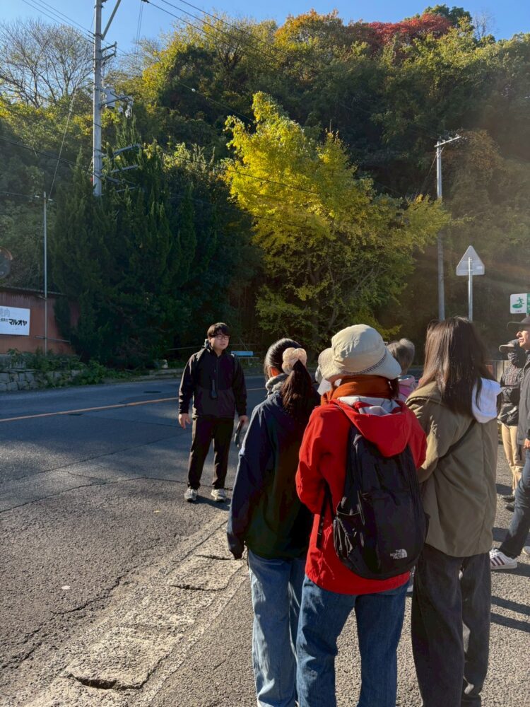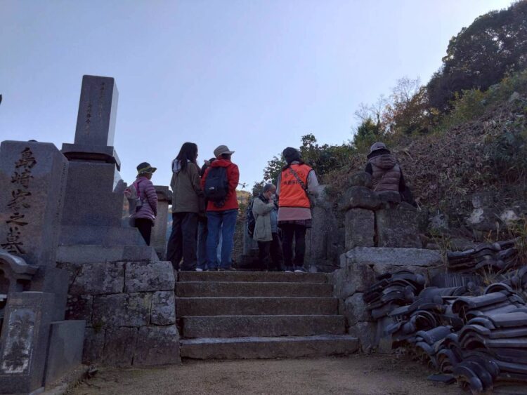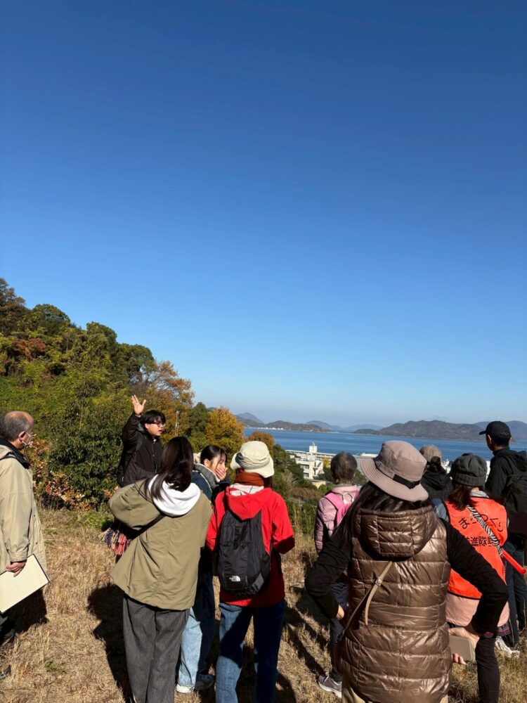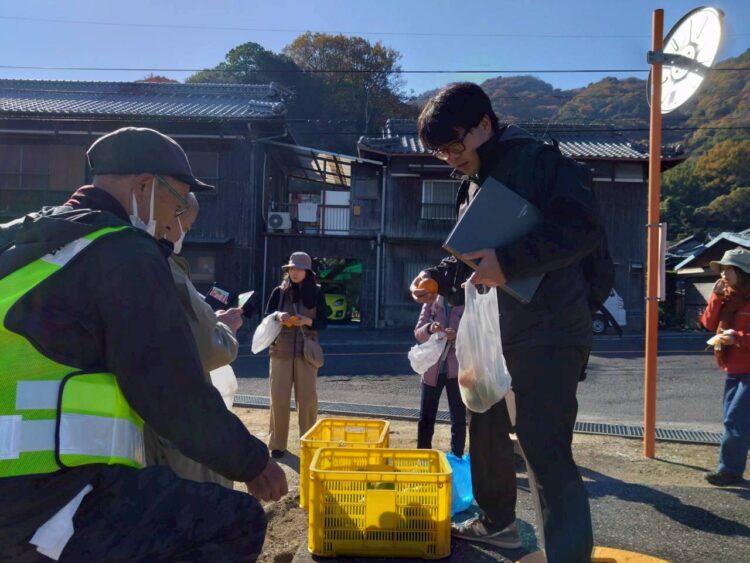 途中、地域の方からミカンを頂戴し、晴れ渡る空の下参加者全員で甘みと酸味がちょうどいい水分たっぷりのミカンを食べて休憩しました。