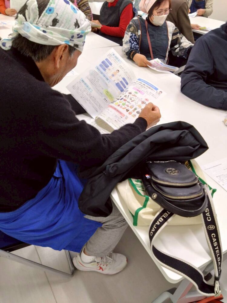 19人が参加し、糖尿病予防について話を聞き、調理開始。
