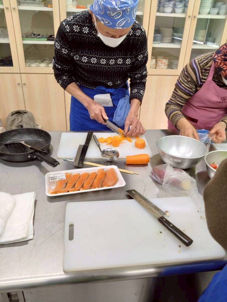 三豊市食生活改善推進協議会の方にご協力いただき、地域交流館荘内で男性料理教室を行いました。